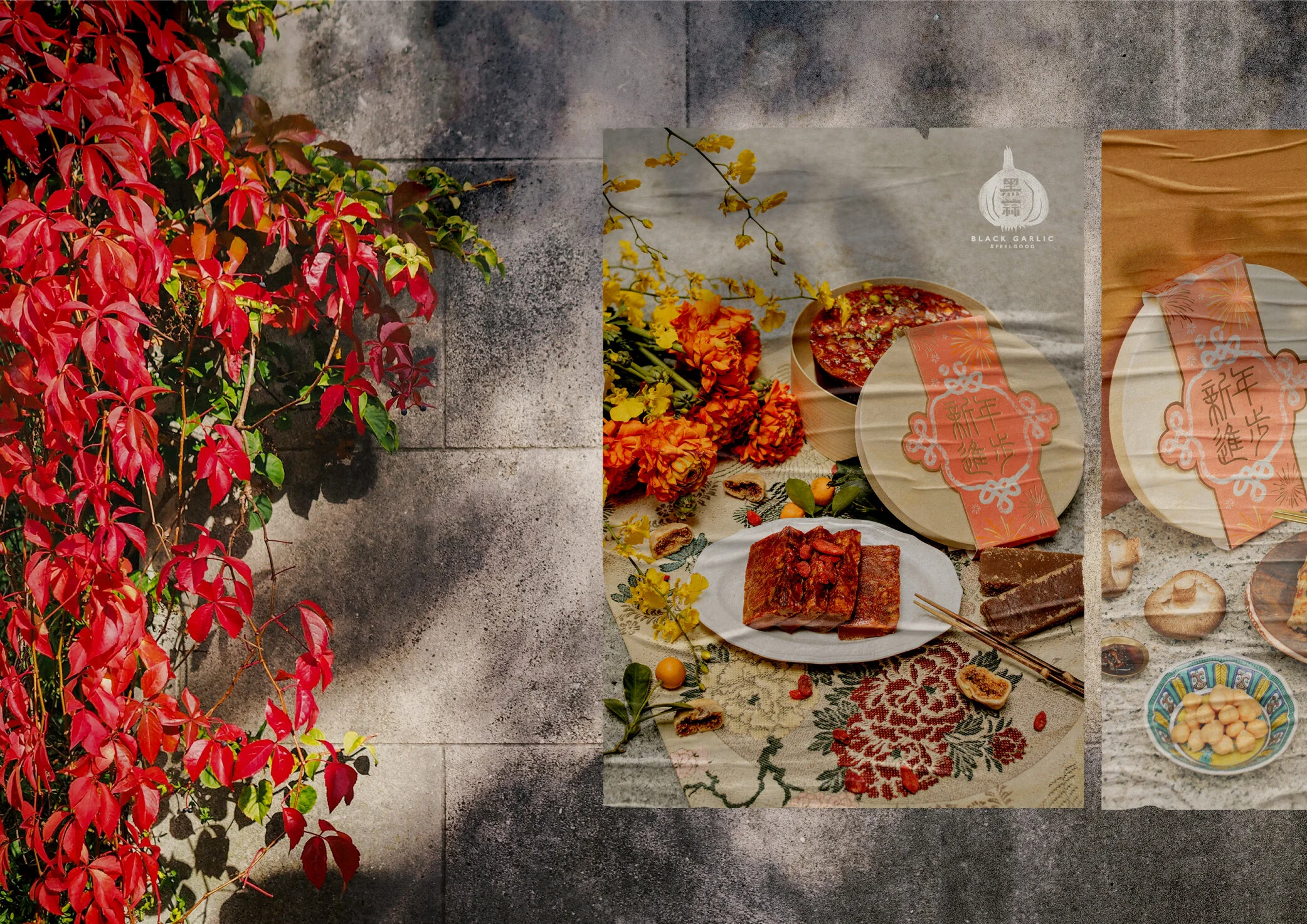 Black Garlic is a restaurant brand which promotes healthy and asian homy food taste. They have launched their Lunar New Year promotion in 2021 with their homemade pudding cakes and sauces with quality ingredients and homy recipe. Festive, homy and welcoming tone are set for the tone and manner of the photoshoot, with the selection of wooden and gold-containing tableware, to uplift the atmosphere.